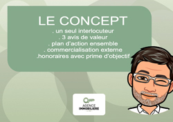 À l’agence immobilière, un seul interlocuteur, un seul mandat de vente, une multi commercialisation et des frais d’agence sur devis avec une prime sur objectif.
